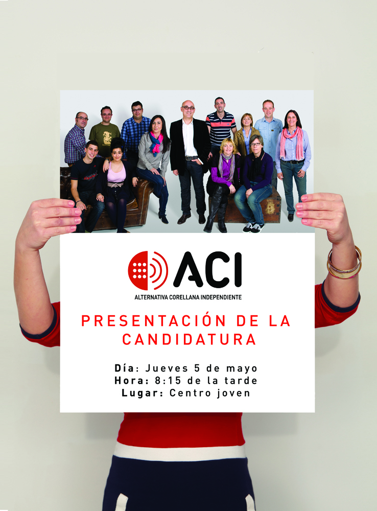 Este jueves día 5, a las 8:15 de la tarde, presentamos la candidatura de nuestra agrupación electoral para las próximas elecciones municipales de Corella.