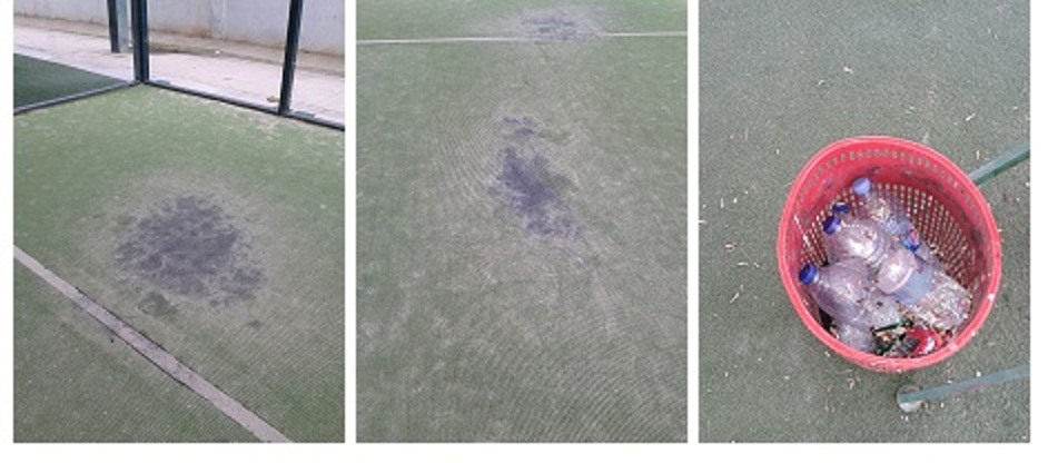 El primero, la situación de las pistas de pádel sin un mantenimiento adecuado y con riesgos para sus practicantes, con suciedad acumulada en algunas zonas que es imprestable que estemos en esta situación, os ponemos unas fotos.