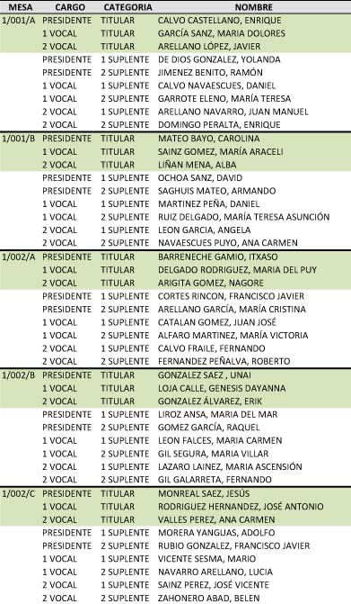 Lista del sorteo de las mesas, elecciones municipales 2015