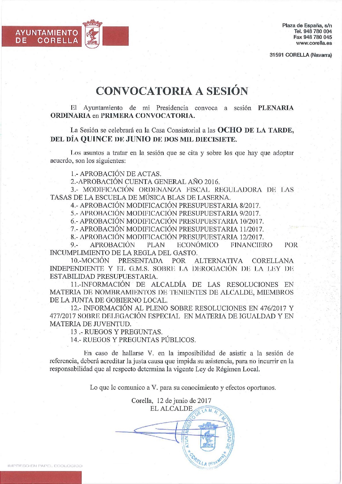Este jueves, 15 de junio, a las 8 de la tarde, tenemos pleno ordinario al que como siempre estáis invitados. Recordar que la entrada es libre.