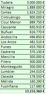 UPN en el Congreso ha firmado (conseguir ya veremos) un acuerdo con el PP, por el que además de otras inversiones, invertirán en instalaciones deportivas 13,1 millones y repartidos por pueblos de la manera siguiente: