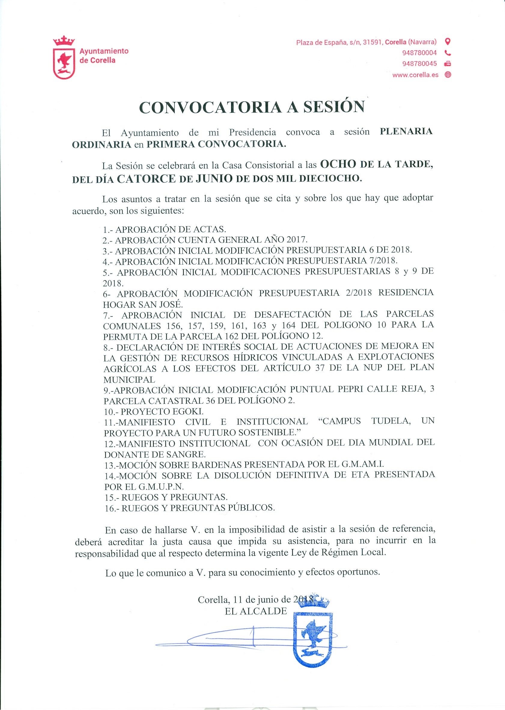 Pleno ordinario junio 2018