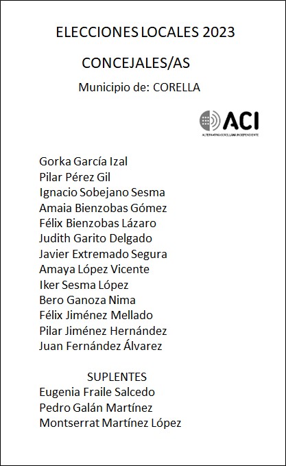 Os presentamos la candidatura de ACI para las elecciones del próximo domingo 28 de mayo.