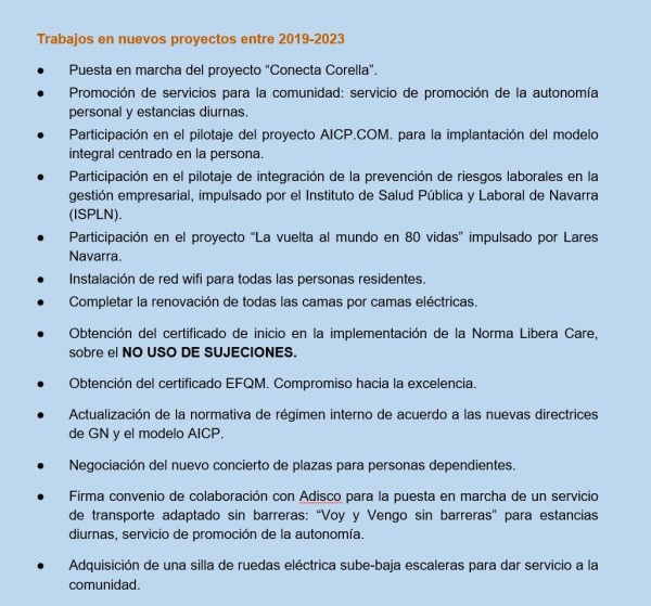 Se han realizado numerosos trabajos de mejora y mantenimiento del edificio y se han creado nuevos proyectos y programas, pero sobre todo durante los años 2020 y 2021, años más duros de la pandemia, las enseñanzas y lecciones que nos transmitió el personal de la residencia (también otros muchos trabajadores/as del Ayuntamiento), son inolvidables.