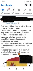 El pasado jueves 25 de junio, una ciudadana de Corella aseguró en un texto publicado en Facebook que: “un componente de la corporación del Muy Ilustre Ayuntamiento (entendemos que de Corella), pasó al lado de su hijo y le exclamó Facha de Mierda”. Insulto, al parecer, realizado por llevar una mascarilla con la bandera de España.